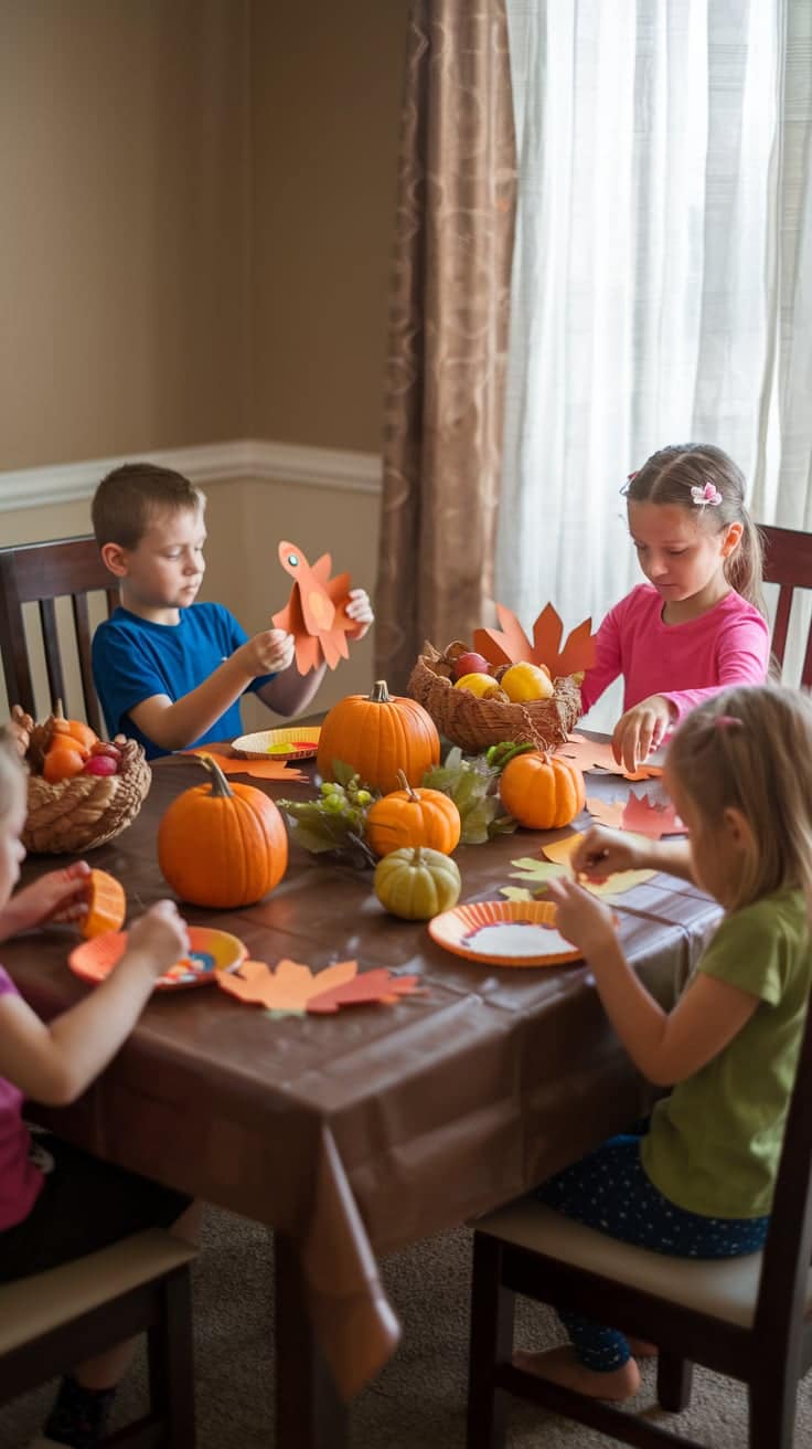 - Name Cards: Let kids decorate folded paper or stickered turkeys and use them as place settings.