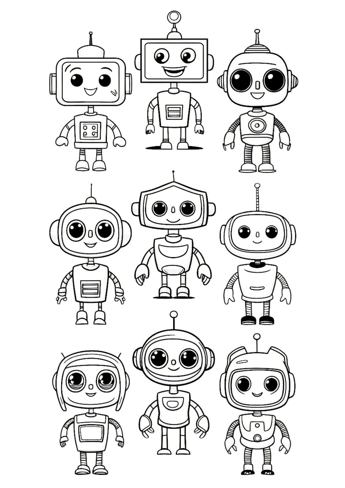 Perfect for younger children, these designs feature adorable robots with easy-to-color shapes and bold outlines.